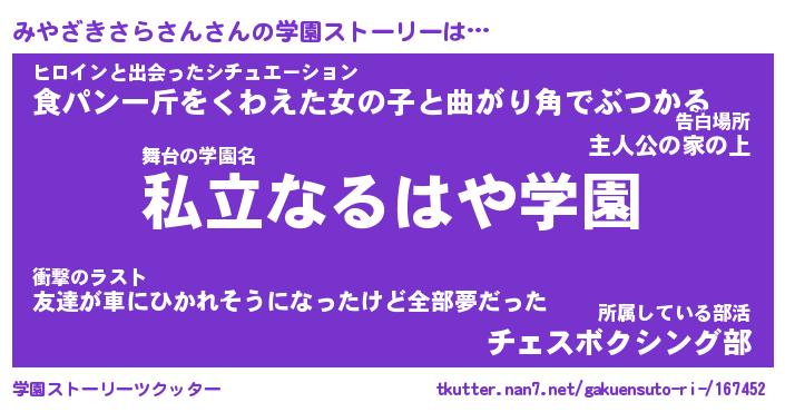 | 女子向けラノベタイトル風あだ名 | 『みやざきさらさん姫と円卓の騎士』 |