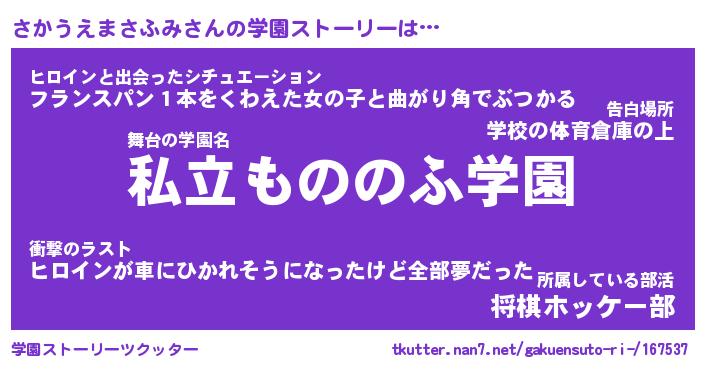 | 男性向けラノベタイトル風あだ名 | 『さかうえまさふみの憂鬱』 |