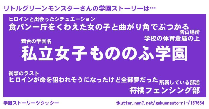 | 男性向けラノベタイトル風あだ名 | 『リトルグリーンモンスターアートオンライン』 |