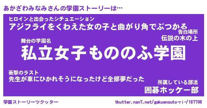 | 男性向けラノベタイトル風あだ名 | 『アカザワミナミアートオンライン』 |