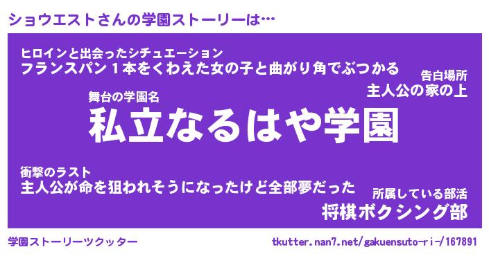 | ヒーロー風カッコイイあだ名 | 『スーパーショウエスト』『天弓騎士ショ』 |
