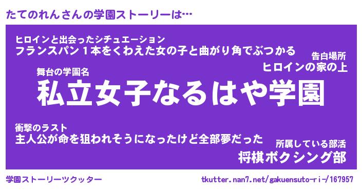 | 男性向けラノベタイトル風あだ名 | 『タテノレンアートオンライン』 |