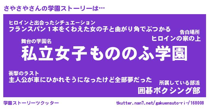 | ファンタジー風あだ名 | 『サヤフェル』『エターナルサヤサヤー』 |