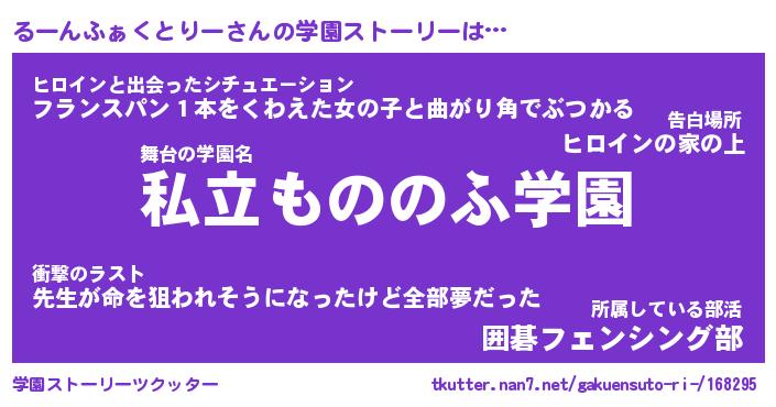 | 男性向けラノベタイトル風あだ名 | 『るーんふぁくとりーの憂鬱』 |