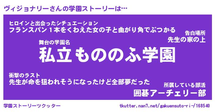 | 告白場所 先生の家の上 …「ふぃぎゅこ」 | 2月17日 06:24 |