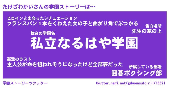 | 男性向けラノベタイトル風あだ名 | 『たけざわかいの憂鬱』 |