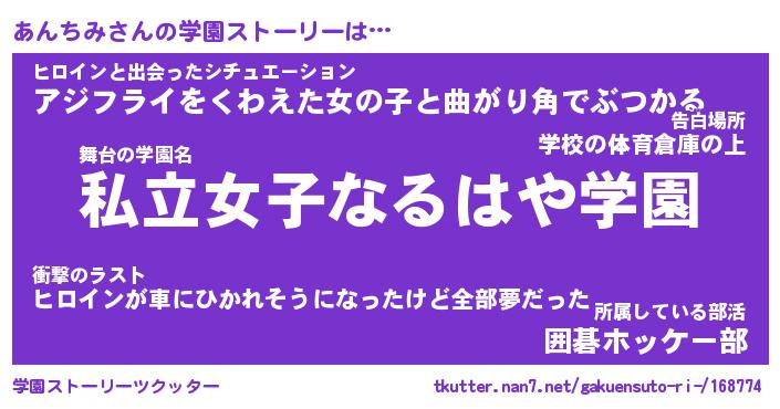 | 意味不明あだ名 | 『ペロリンあんちみ』『永久保存あんちみ』 |