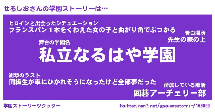 | 女子向けラノベタイトル風あだ名 | 『(仮)せるしおのやんごとなき事情』 |