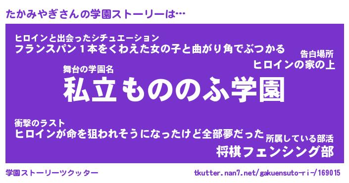 | 男性向けラノベタイトル風あだ名 | 『たかみやぎの憂鬱』 |