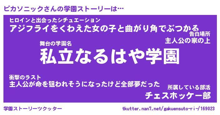 | 男性向けラノベタイトル風あだ名 | 『ピカソニックの憂鬱』 |