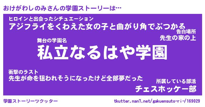 | 告白場所 先生の家の上 …「ふぃぎゅこ」 | 2月17日 06:24 |