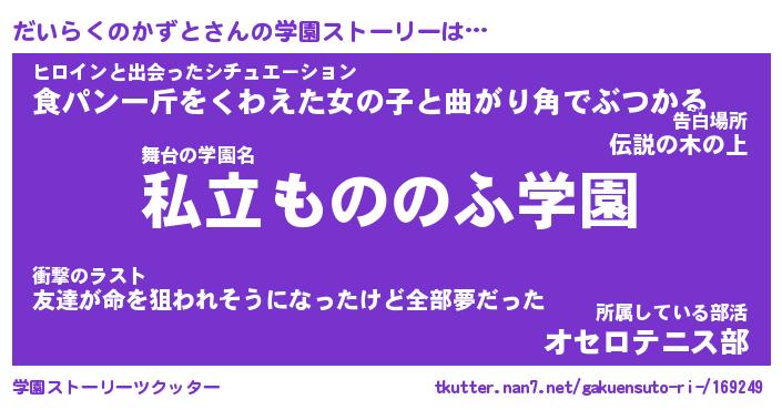 | 男性向けラノベタイトル風あだ名 | 『だいらくのかずとの憂鬱』 |