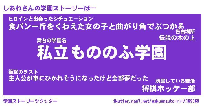 | 男性向けラノベタイトル風あだ名 | 『しあわの憂鬱』 |