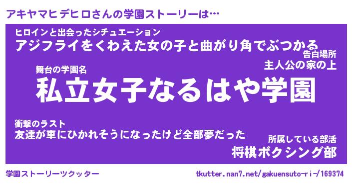 | 伝説のあだ名 | 『封印されしスナイパーアキヤマヒデヒロ』 |