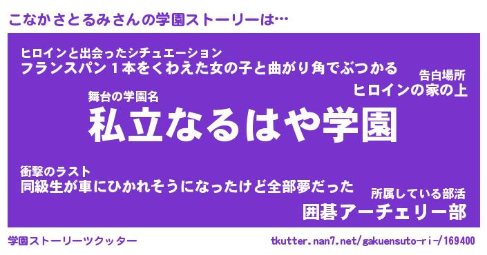 | 男性向けラノベタイトル風あだ名 | 『こなかさとるみの憂鬱』 |
