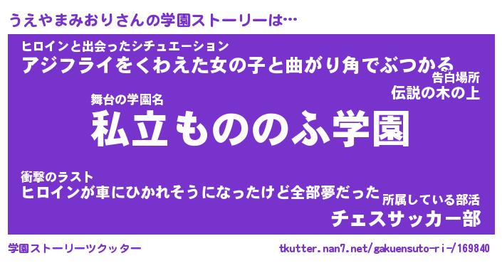 | 女子向けラノベタイトル風あだ名 | 『(仮)うえやまみおりのやんごとなき事情』 |