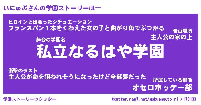 | 伝説のあだ名 | 『伝説のスナイパーいにゅぷ』 |