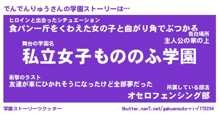 | 女子向けラノベタイトル風あだ名 | 『でんでんりゅう姫と円卓の騎士』 |