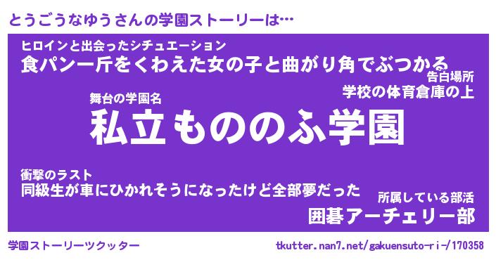 | 告白場所 先生の家の上 …「ふぃぎゅこ」 | 2月17日 06:24 |