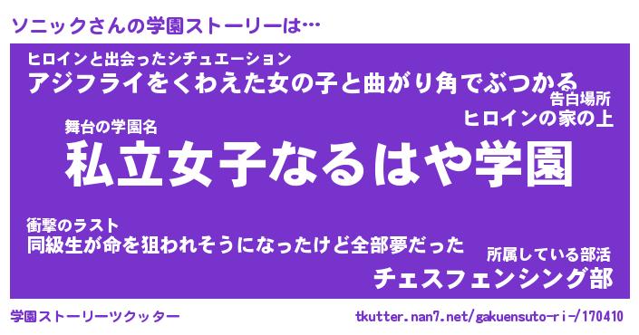 | 意味不明あだ名 | 『ペロリンソニック』『永久保存ソニック』 |