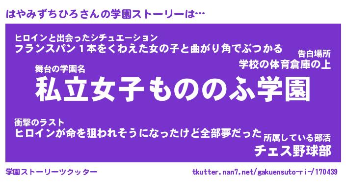 | 胡散臭い通販商品みたいなあだ名 | 『億万長者になれるブレスレット…その名も「はやみずちひろ」』 |