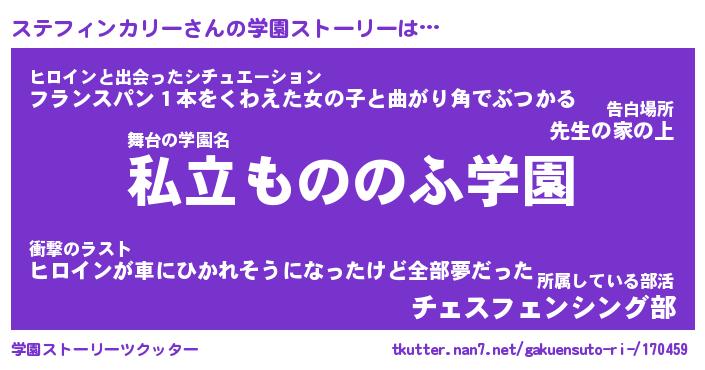 | 男性向けラノベタイトル風あだ名 | 『ステフィンカリーの憂鬱』 |