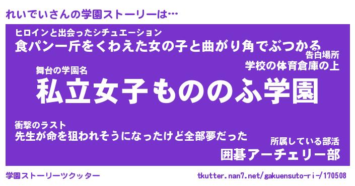 | 女子向けラノベタイトル風あだ名 | 『れいでい姫と円卓の騎士』 |
