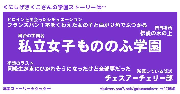 | 男性向けラノベタイトル風あだ名 | 『クニシゲキクコアートオンライン』 |