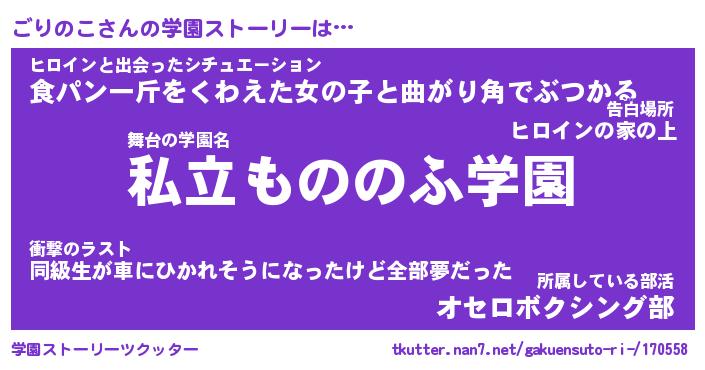 | 女子向けラノベタイトル風あだ名 | 『(仮)ごりのこのやんごとなき事情』 |