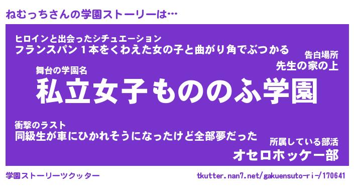 | ファンタジー風あだ名 | 『ネムフェル』『エターナルネムッチー』 |