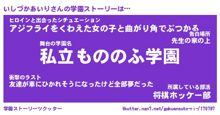 | 男性向けラノベタイトル風あだ名 | 『いしづかあいりの憂鬱』 |