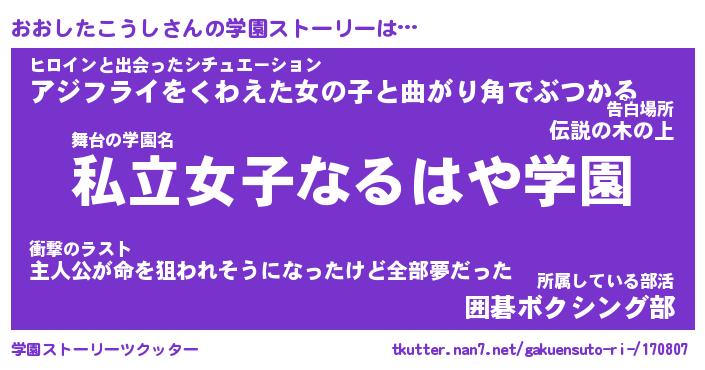 | 男性向けラノベタイトル風あだ名 | 『オオシタコウシアートオンライン』 |