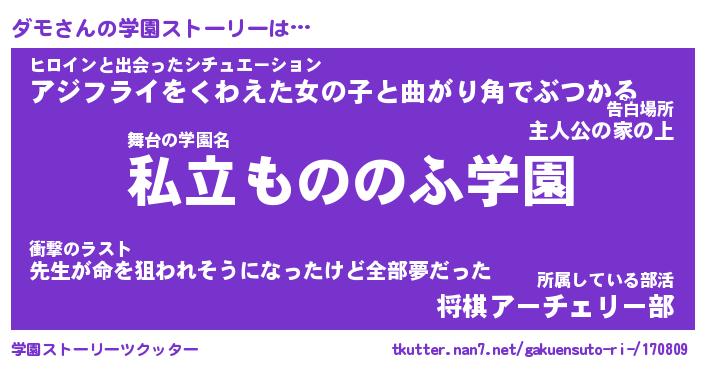 | 女子向けラノベタイトル風あだ名 | 『ダモ姫と円卓の騎士』『ダモ伯爵の花嫁』 |