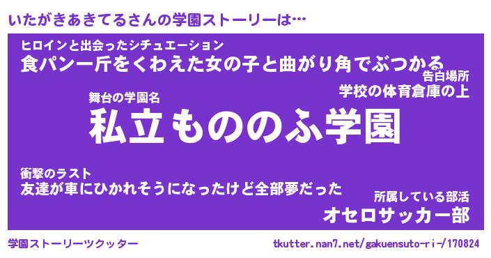 | 男性向けラノベタイトル風あだ名 | 『いたがきあきてるの憂鬱』 |
