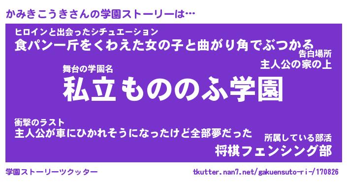 | 男性向けラノベタイトル風あだ名 | 『かみきこうきの憂鬱』 |