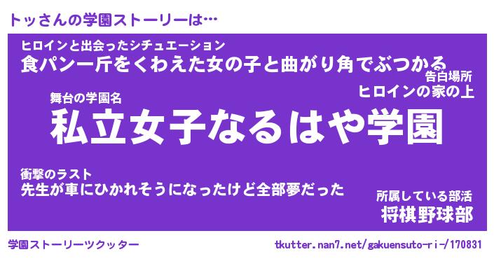 | 告白場所 先生の家の上 …「ふぃぎゅこ」 | 2月17日 06:24 |