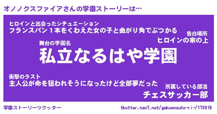 | ファンタジー風あだ名 | 『オノフェル』『ファントムオノス』 |
