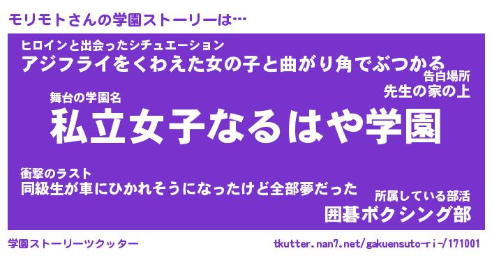 | ヒーロー風カッコイイあだ名 | 『スーパーモリモト』『天弓騎士モリ』 |