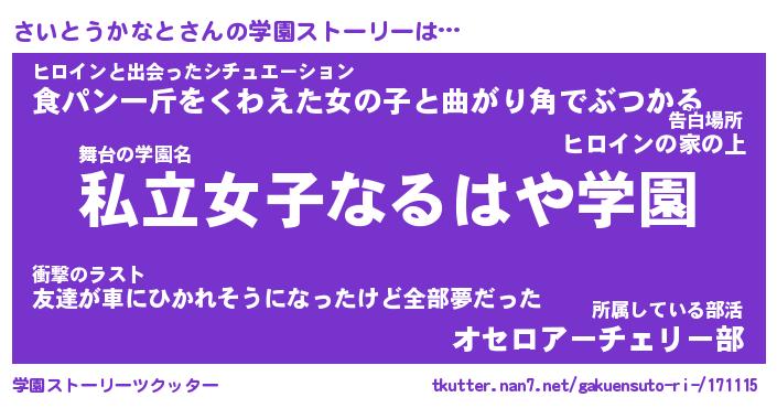 | 男性向けラノベタイトル風あだ名 | 『サイトウカナトアートオンライン』 |