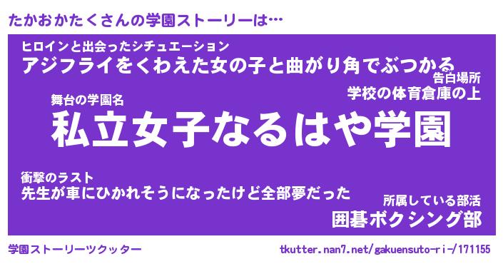 | 伝説のあだ名 | 『封印されしスナイパーたかおかたく』 |