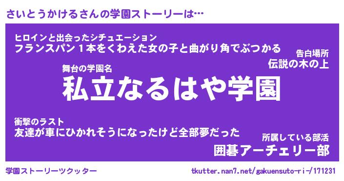 | 男性向けラノベタイトル風あだ名 | 『さいとうかけるの憂鬱』 |