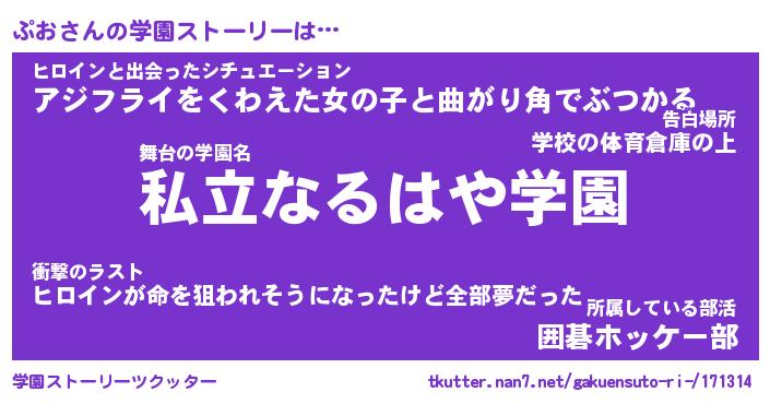 | ヒーロー風カッコイイあだ名 | 『スーパープオ』『ウルトラぷおマン』 |
