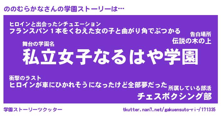 | 伝説のあだ名 | 『封印されしスナイパーののむらかな』 |