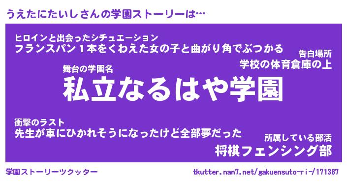 | 伝説のあだ名 | 『伝説のスナイパーうえたにたいし』 |