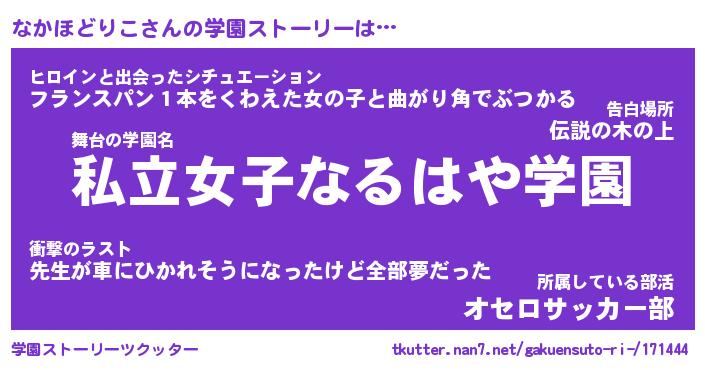 | ヒーロー風カッコイイあだ名 | 『スーパーナカホドリコ』『暗黒騎士ナカ』 |