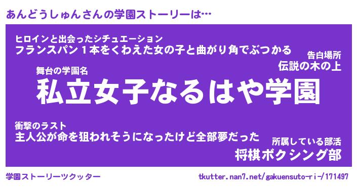 | 女子向けラノベタイトル風あだ名 | 『あんどうしゅん姫と円卓の騎士』 |