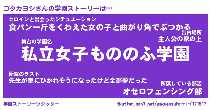 | ファンタジー風あだ名 | 『コタフェル』『エターナルコタカヨシー』 |