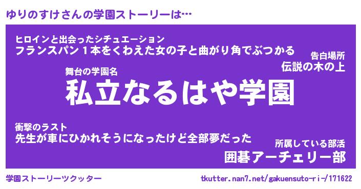 | 女子向けラノベタイトル風あだ名 | 『(仮)ゆりのすけのやんごとなき事情』 |