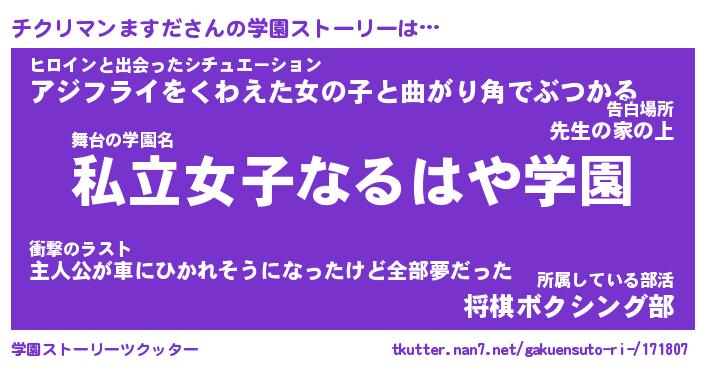 | 告白場所 先生の家の上 …「ふぃぎゅこ」 | 2月17日 06:24 |