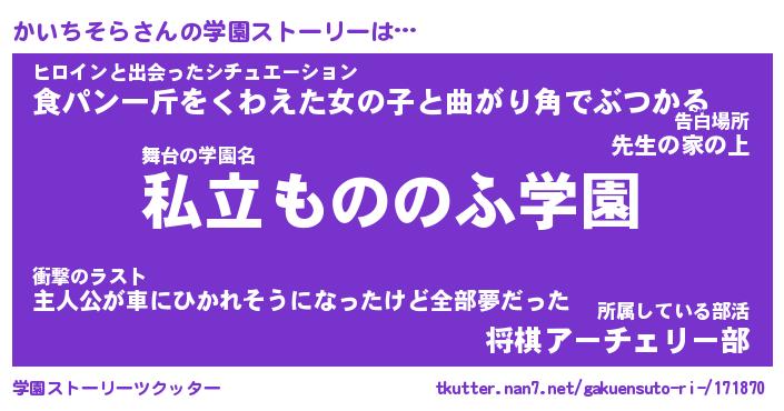 | 男性向けラノベタイトル風あだ名 | 『かいちそらの憂鬱』 |